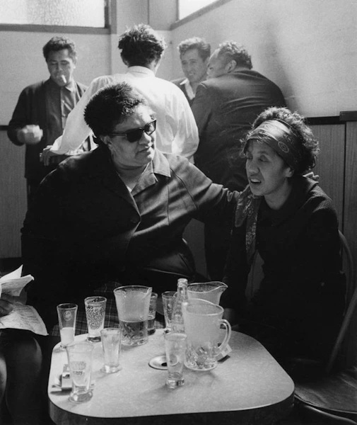 Her social documentary photographs show the world as she found it. Subjects are not posed, and the setting is real. Westra described this poignant scene of two women sitting in a bar at Trentham Racecourse as summing up emotion. Although she didn’t know what caused the need for one woman to console the other, she ‘caught the moment’ and it invites speculation. What is the relationship of the two women? Are we intruding on these quiet moments? Who is seated with them just out of view, clutching a newspaper? This can give us a feeling of unresolved tension.