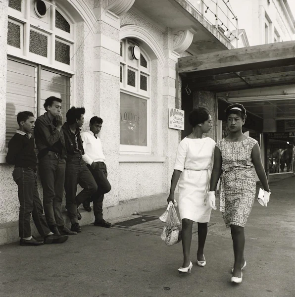 Rather than photographing the parade of Miss New Zealand contestants in Wellington’s Cuba Street in 1971, Ans Westra turned her camera towards the onlookers. Her photograph immerses us in the scene, without actually seeing what people had gathered to watch.