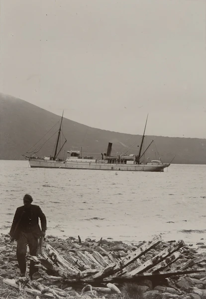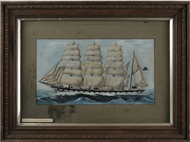 Sailing from Sydney, set for England with a cargo of wheat in March 1907, the Dundonald ran into rough seas and strong winds which took her off course and onto the coast of Disappointment Island, part of the Auckland Islands group. Sixteen of the 28 crew members made it to shore, however one died soon after. This was the beginning of an eight-month saga for the remaining 15 castaways before they were rescued by the Hinemoa when she stopped at the Auckland Islands as part of a sub-Antarctic Scientific Expedition.
